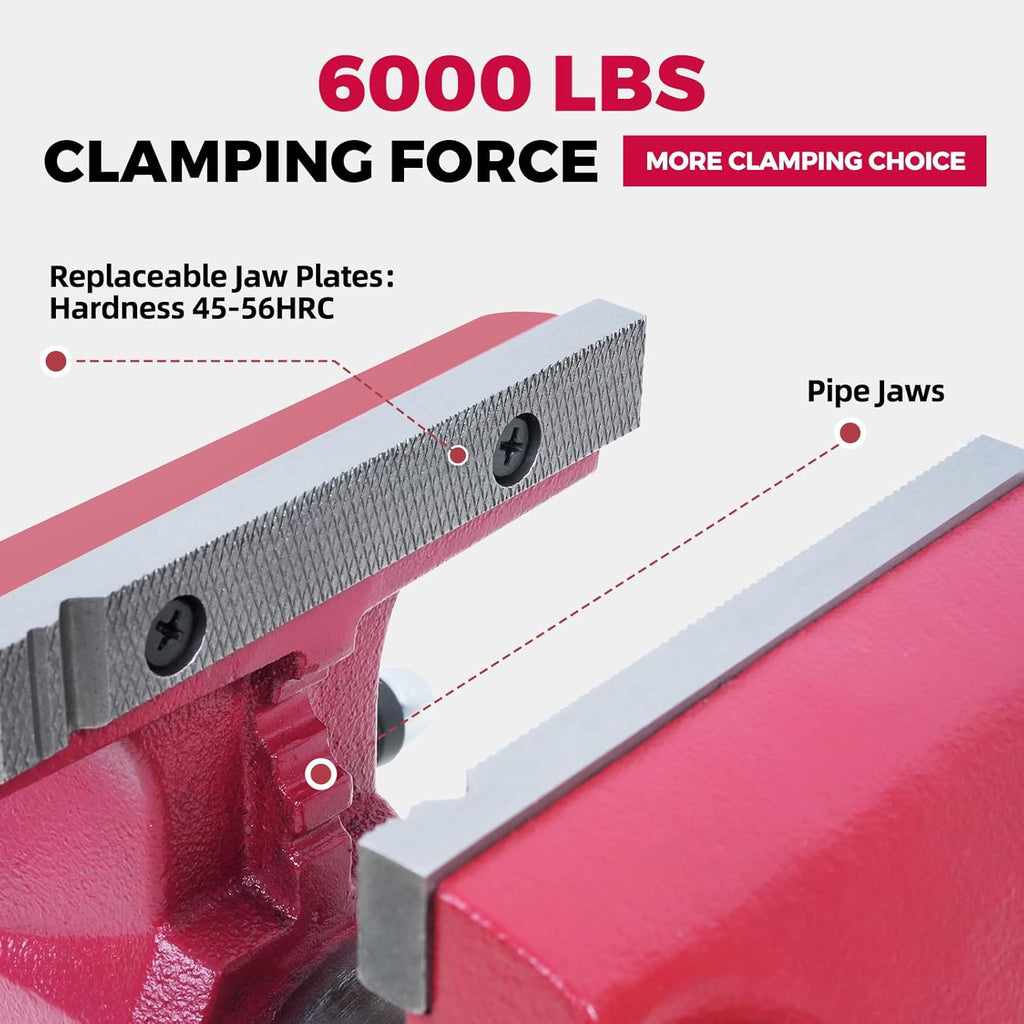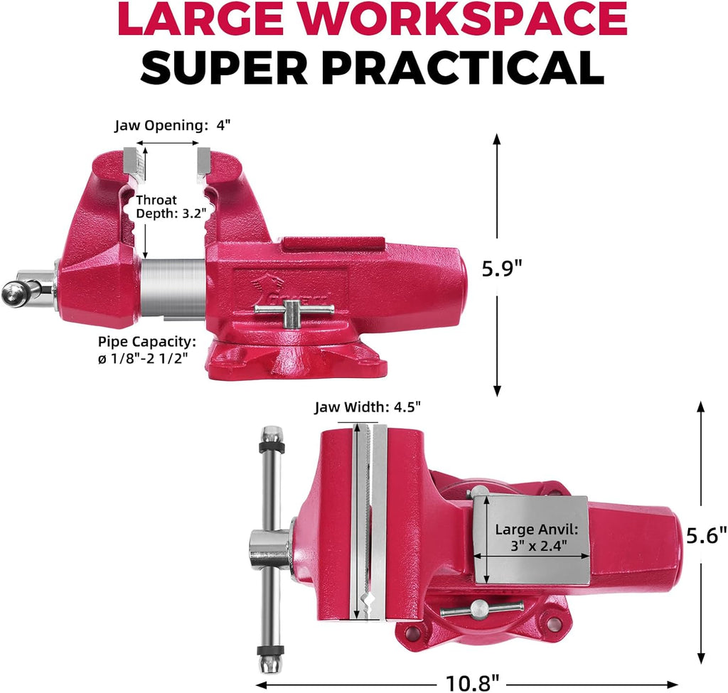 Forward Round Bench Vise, 1740B Economic Industrial Vice PRO with 360° Swivel Base, 4" Jaw Width, 4" Max Jaw Opening, 2-5/8" Throat Depth, 86,000PSI Ductile Iron
